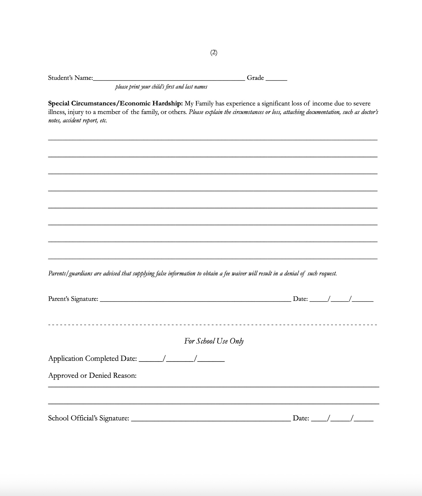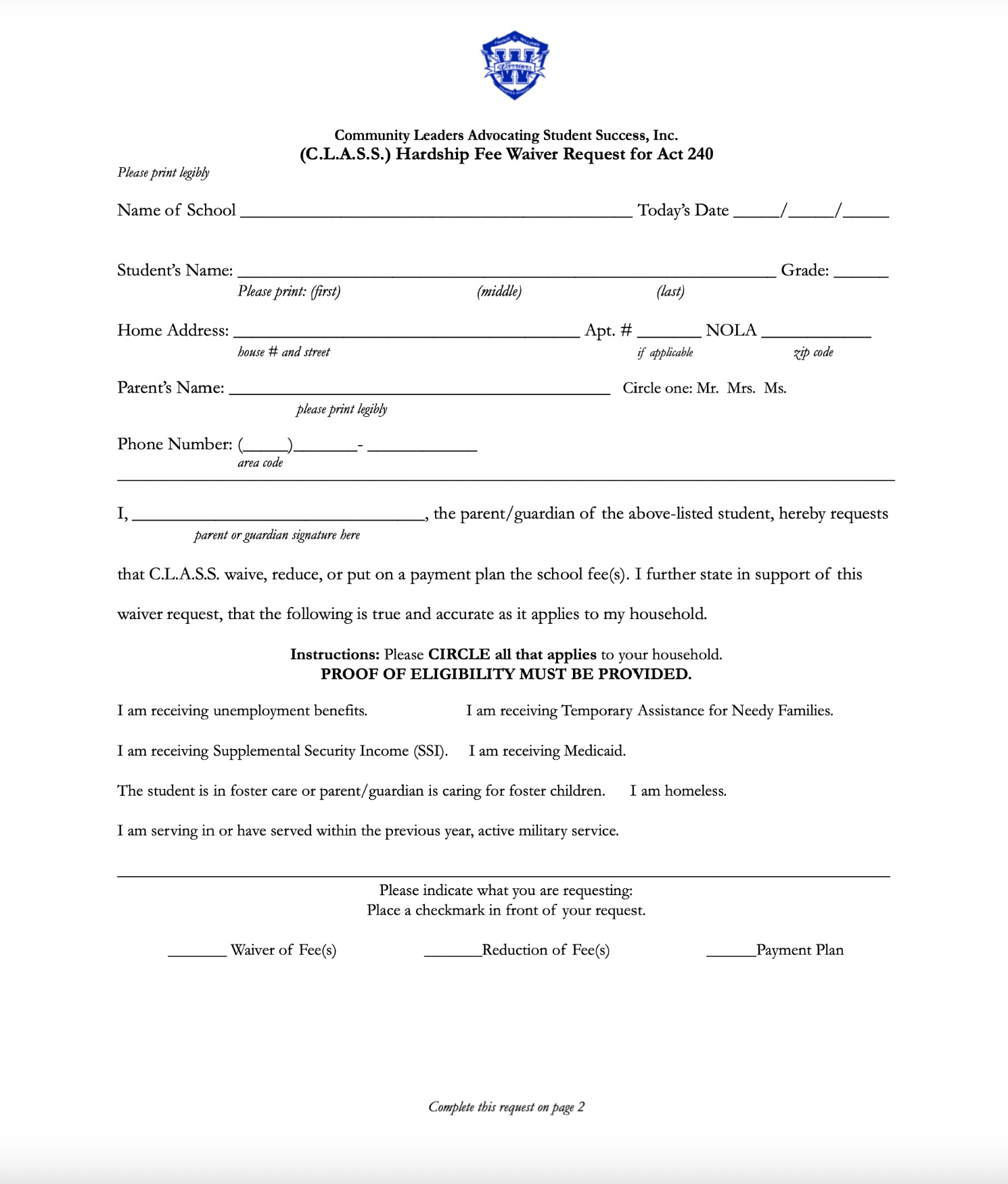 C.L.A.S.S. Hardship Waiver Request for Act 240